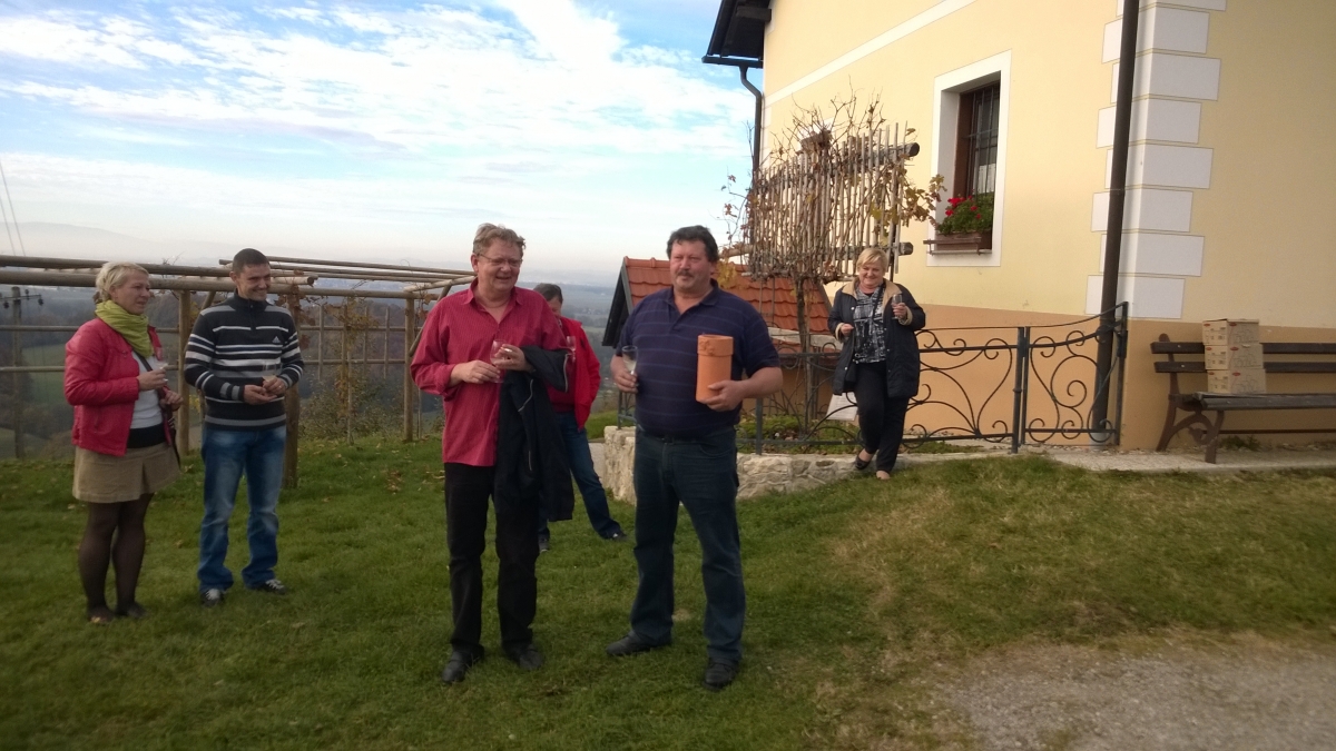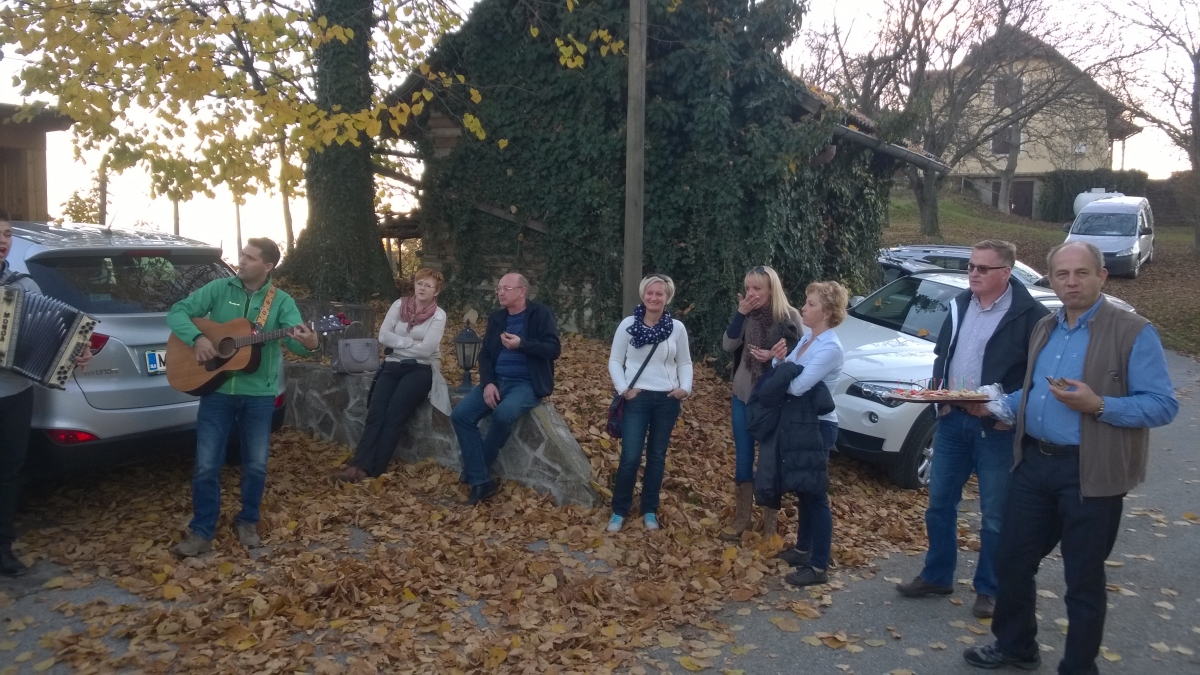 Tudi to leto smo drugo soboto v novembru, 7.11,2015, v čudovitem sončnem dnevu prehodili del haloške poti od Cirkulan do Zavrča. Pot nas je najprej vodila do cerkvice Sv. Ana v Dolanah. Narava je letos dala vinogradu vse, kar si vinogradnik lahko samo želi. Tako smo na poti proti Zavrču poskušali zelo dober mošt kar na treh lokacijah. Popoldan je bil prekratek na poti s prijatelji, ob zvokih harmonike in kitare.